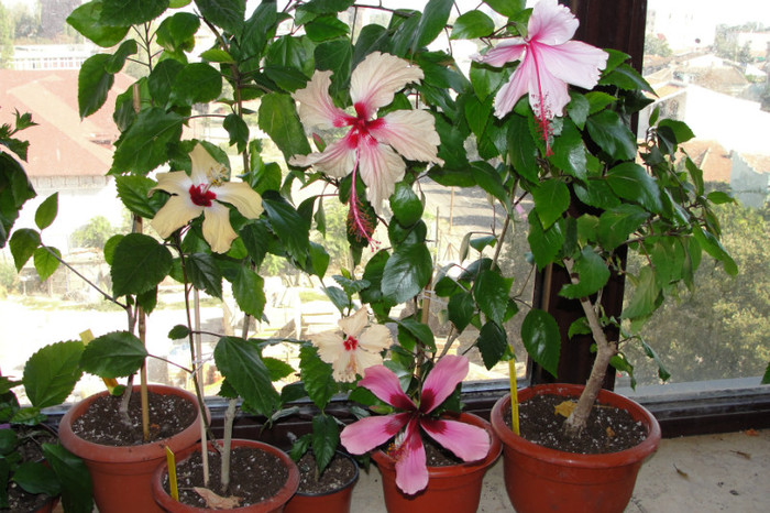 Pare ca sunt multi, dar infloresc cam aceeasi hibi! Nu i-am scos afara ca nu am unde! Le merge bine doar celor care stau la geam! Si tot cei de la geam infloresc! La cati hibi am cred ca numai 5% infloresc! Restul nu!