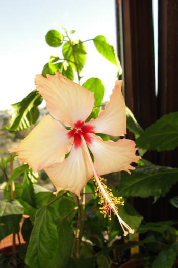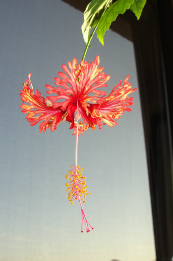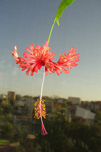 Acest hibi a facut si floare somon dar acum a facut o floare rosie, de aceea am spus ca trebuia sa fie somon !