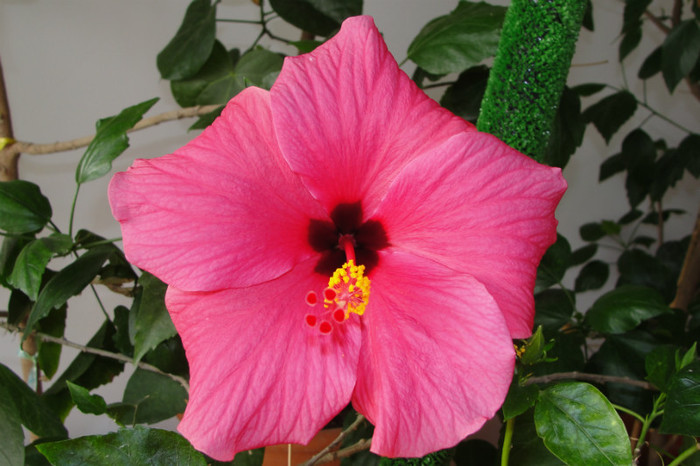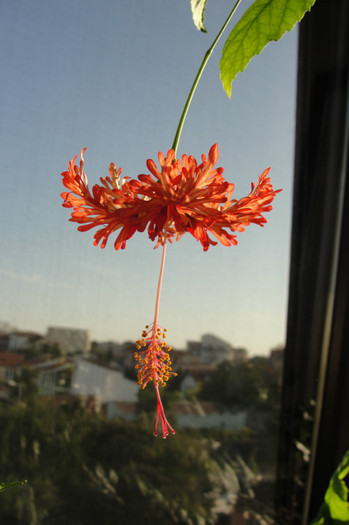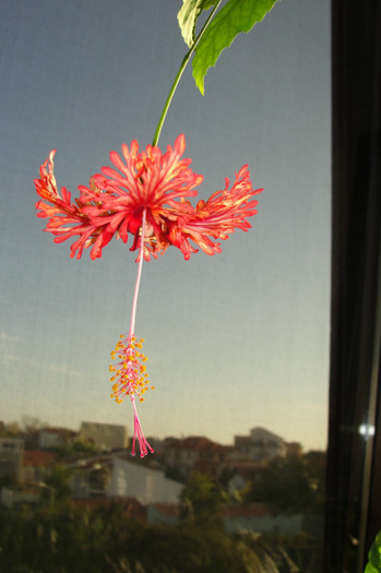 Acest hibi a facut si floare somon dar acum a facut o floare rosie, de aceea am spus ca trebuia sa fie somon !