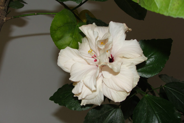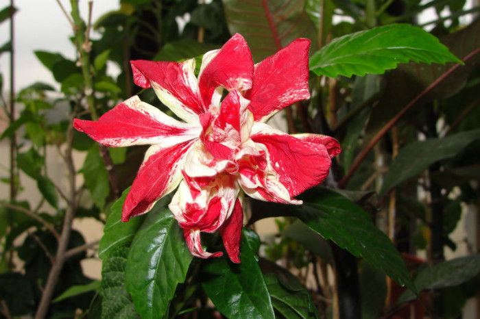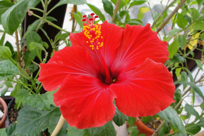 Acest hibi a facut si floare somon dar acum a facut o floare rosie, de aceea am spus ca trebuia sa fie somon !