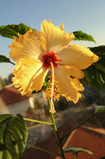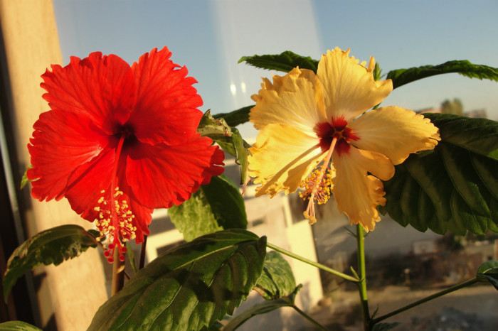 Acest hibi a facut si floare somon dar acum a facut o floare rosie, de aceea am spus ca trebuia sa fie somon !